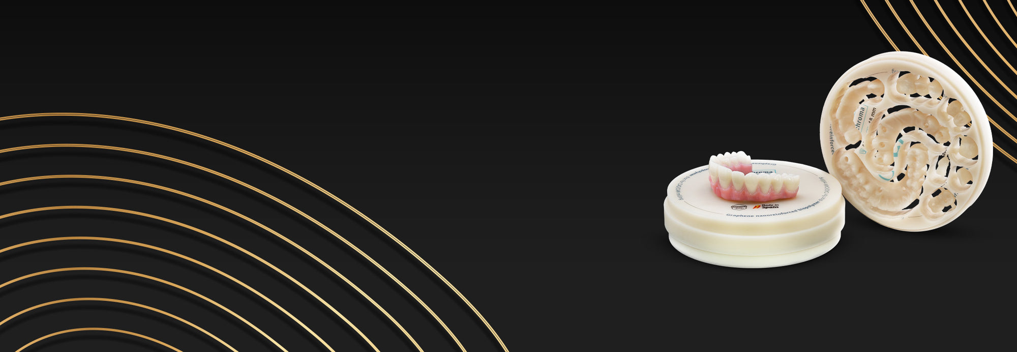 It is an advanced CAD/CAM disc designed for dental laboratories and clinics. It is made by reinforcing PMMA with graphene, creating a material that is strong, lightweight, and highly aesthetic. The disc is engineered for modern digital workflows, milling smoothly while delivering reliable results for a wide range of restorative applications.